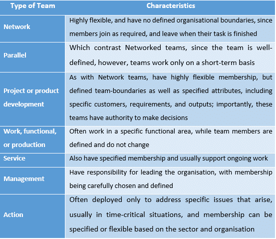 VTs are often composed of experts distributed globally, often incorporating employees working from home; it also enables companies to accommodate employees with disabilities (PMI, 2017, p. 311). A VT is a group working towards a shared goal (PMI, 2017, p. 725), without geographical, organisational, and time barriers (Duarte & Snyder, 2006, p. 5). We can identify specific VT types in the literature, and their characteristics, as follows: