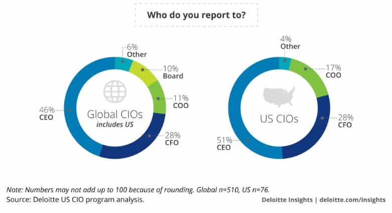 Sommige bedrijven laten hun IT-afdeling nog steeds leiden door de CFO omdat ze denken dat de IT-afdeling min of meer een vleugel van de financiële afdeling is. Deze denkwijze is misschien afgeleid van jaren geleden waarin bedrijven geen grote IT-afdeling hadden en niemand het werk van IT-experts echt begreep.