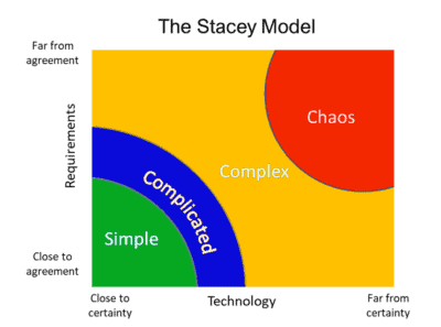 Het Stacey-model helpt het team en de belanghebbenden op één lijn te krijgen wat betreft de aanpak, en de verwachtingen rondom flexibiliteit, reactievermogen op verandering en iteratieve cycli te beheren.